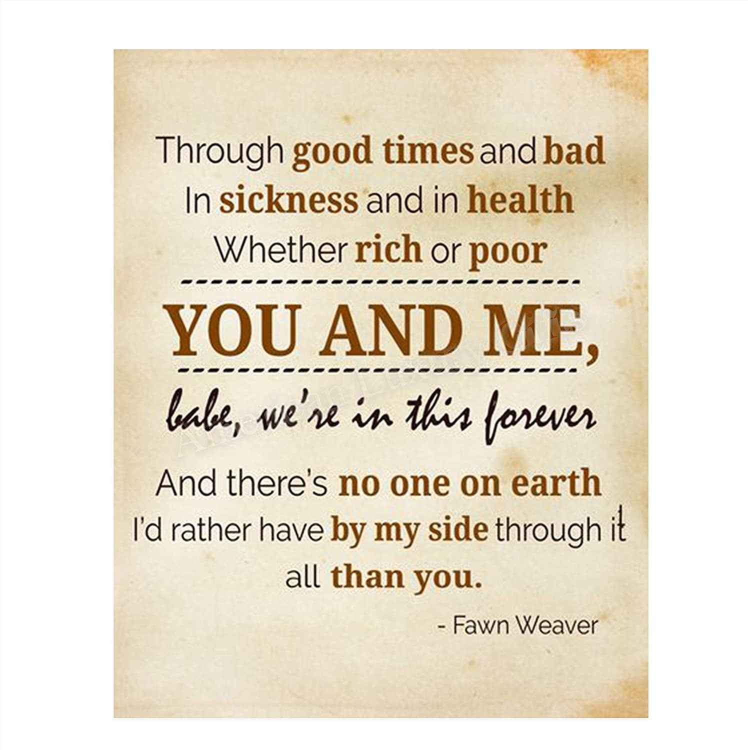 Marriage Vows You Me Babe Forever Marriage Quotes Wall Art Print 8 X 10 Wall Decor Ready To Frame Modern Typographic Parchment Print For Home Bedroom Decor Great Loving Message By Fawn Weaver Walmart Com
